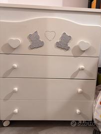 Puoi utilizzare questo mobile come bagnetto fasciatoio quando il tuo bambino è neonato e, in seguito, come cassettiera per la sua stanza.