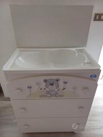 cassettiera 3 cassetti con orsetti ,vaschetta per bagnetto, piano con fasciatoio