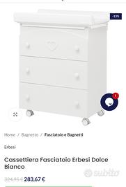 Cassettiera utilizzabile come fasciatoio e con vano per la vasca per il bagnetto, comodissima già dai primi giorni del bimbo ed utilizzabile successiva come cassettiera