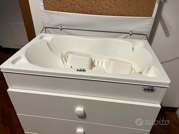 Completa di vaschetta sottostante per il bagnetto del neonato con tutti gli accessori.