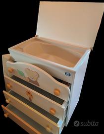 Cassettiera fasciatoio marca Pali, completa di vaschetta per il bagnetto integrata e materassino imbottito.