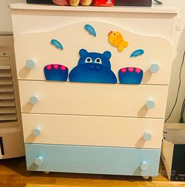 Disponibile armadio tre ante + 2 mensole orsetti. Cassettiera, fasciatoio e settimino Azur.