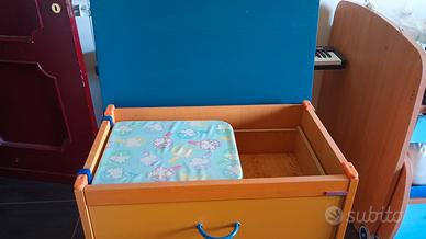 cassettiera/fasciatoio Foppapedretti in ottime condizioni . Adatto per bambini da 0 mesi a 6/8 anni. Ha una rotella che si toglie quando è in movimento, pertanto si consiglia di tenerla fissa. Incluso ciuccio sigillato. Le dimensioni sono 45 profondità, 90 cm altezza con rotelle e 71,5 cm nella parte più larga.