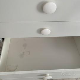 Cassettiera Fasciattoio salvaspazio Brevi, 4 cassettoni removibile, con Vaschetta Bagnetto Neonato, senza materassino. Questo articolo presenta alcuni segni di usura, segni di prodotti per bambini. Colore Bianco.
