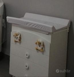 cassettiera completa di fasciatoio e vaschetta per bagnetto in buone condizioni