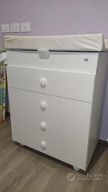 Cassettiera fasciatoio completa di vaschetta e ripiano per trasformarlo in normale cassettiera. 71cm di larghezza, 45cm di profondità e 90cm di altezza comprese le rotelle. Ottime condizioni come in foto, ritiro a mano