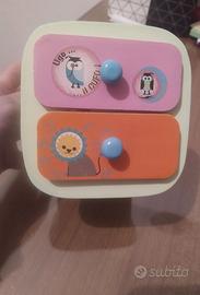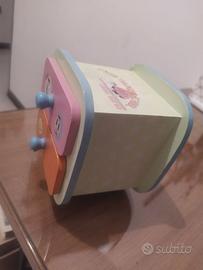 Piccola cassettiera colorata con due cassetti per riporre piccoli oggetti per bambini. Consegna a mano.