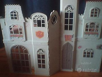 IL LETTO DEL PIANO SUPERIORE SI TRASFORMA IN UN MOBILE CON SPECCHIO E CASSETTO. SUL PAVIMENTO C'E' UNA ROTELLA PER FARE BALLARE LA BARBIE. SE TIRI LA CORDA DEL CAMPANILE SI SENTONO SUONARE LE CAMPANE A FESTA (FUNZIONA A PILE, NON INCLUSE). VENDO USATO, SENZA SCATOLA ORIGINALE. OGGETTO RARO E PER COLLEZIONISTI!!!!!!! PROV. MONZA. SONO UN PRIVATO NON UN NEGOZIO.