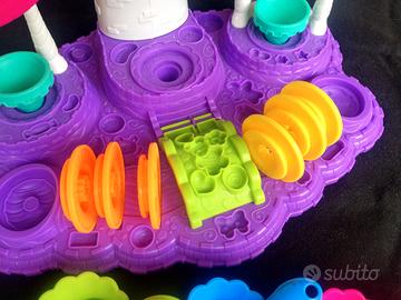 Vendo castello dei gelati - gelateria Play Doh completo di tutti i pezzi in ottime condizioni insieme ad una scatolina con stampini di forme varie come in foto.