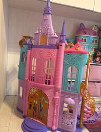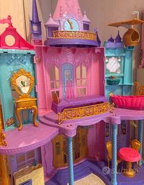 Castello delle principesse in ottimo stato con tavolo sedie vasca da bagno letto e ci sono alcuni accessori come due piatti una forchetta mancano solo i piccoli accessori come bicchiere piatti posate