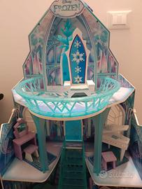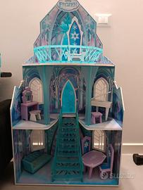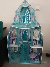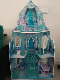 Castello di Elsa, Frozen. In legno, ottima qualità, marca Kidkraft. Ancora in ottime condizioni, altezza 115 cm. Prezzo originale circa 165 euro. Accessori originali tutti presenti: pianoforte con seduta, tavolo e due sedie, trono, divano, specchio con seduta. Molto bello, seconda mano ma ben tenuto. Non lo usiamo.