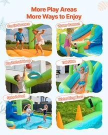 Più opzioni di gioco: Con un ampio castello gonfiabile, un canestro da basket e una piscina per bambini, questa struttura gonfiabile per giochi acquatici offre un divertimento vario per bambini e famiglie