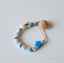 Catenella portaciuccio fatto a mano personalizzata in legno. Misura circa 22cm, massimo 23cm(dipende dal nome). TEMPO DI REALIZZAZIONE MAX.5GIORNI LAVORATIVI. Scatola regalo +1,5€