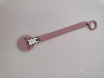 IN SILICONE. Catenella per ciuccio in silicone, con clip e anello in silicone. La clip si attacca ai vestiti e l'anello si aggancia al pulsante del ciuccio per tenerlo in posizione