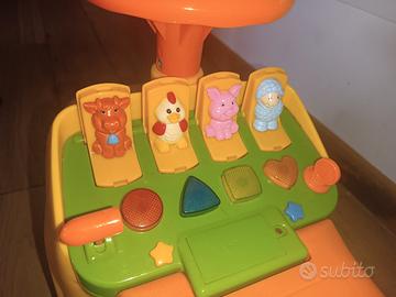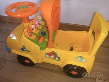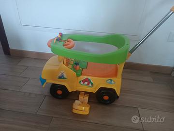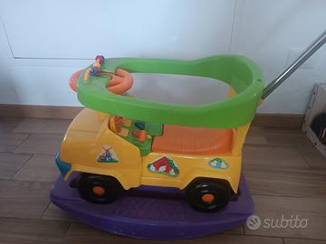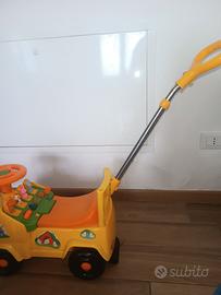 Macchinina, camioncino cavalcabile 3 in 1. È possibile utilizzarla come dondolo con la base, come macchina a spinta del genitore con pedaline (in foto sono solo appoggiate ma hanno le viti per montarle) e manico o come cavalcabile a spinta per i bambini più grandi. Tasti con musiche e sportelli che si aprono con pupazzi i di animali. Molto versatile e divertente
