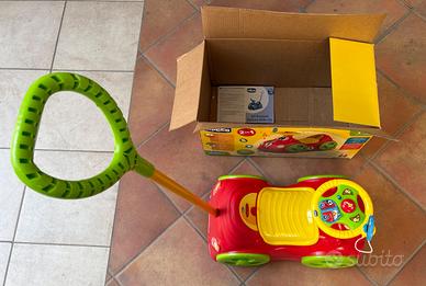 All Around Deluxe di Chicco è il cavalcabile Made in Italy perfetto per giocare e scoprire il mondo sia dentro che fuori casa e per lo sviluppo delle capacità motorie. E’ dotato di un pratico maniglione removibile che ti permette di guidare e di controllare i movimenti del tuo bambino. Una volta rimosso, il piccolo potrà muoversi in piena autonomia e libertà grazie alle ruote piroettanti, divertendosi con gli effetti sonori e le melodie del volante elettronico. Sotto il sedile è presente un vano porta oggetti.