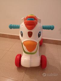 Modalità di utilizzo: dondolo, utilizzando la base per maggiore stabilità, oppure senza base cavalcabile con le ruote