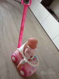 Cavalcavile per bambole con vassoio per merenda e manico per spinta