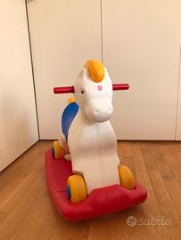 Cavallo a dondolo che si trasforma in cavallo a ruote. Comprato da Toys, robusto e sicuro.