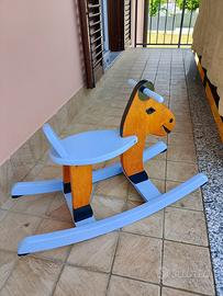 Vendo cavallino a dondolo in legno per bambini, robusto e stabile, ideale per cameretta o area giochi. È stato usato dai miei figli ed è in buone condizioni generali, con normali segni del tempo e dell’utilizzo, ma ancora molto bello e perfettamente utilizzabile. Struttura solida, design simpatico e colori piacevoli: un gioco classico che può anche essere un bel complemento d’arredo.