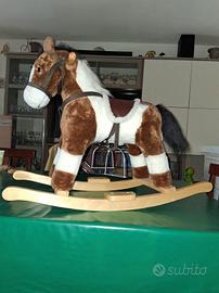 cavallo a dondolo usato pochissimo,come nuovo cm70L x 55H x 35P , con suoni galoppo e nitriti azionabili dalle orecchie.
