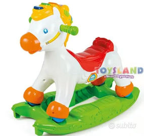Vendo cavallino cavalcabile a dondolo Martino il cavallino con musiche e luci. Togliendolo dalla base diventa un cavalcabile a spinta usato pochissimo, in ottimo stato. Multifunzione 3 in 1: dondolo, cavalcabile e centro attività. Elettronico parlante, la criniera è un centro attività con 7 tasti interattivi. Insegna le prime lettere, i numeri e i nomi degli animali. Stimola il bambino anche a prendersi cura del cavallino sviluppando la fantasia e il gioco imitativo. Insegna anche l’inglese. Cavallo cavalcabile con ruote ma anche a dondolo Cavalcabile e anche a dondolo Martino il cavallino molto bello con tante musiche e luci colorate.