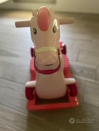 Cavallino chicco rosa, perfettamente funzionante con suoni e ruote, si può usare anche come dondolo. Qualche segno sulle ruote, da uso su pavimento