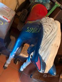 Sheila, stupendo cavallino elettrico in alluminio perfettamente funzionante . Adatto a tutte le eta’ dell’infanzia , e’ un gioco che fara felici i bimbi di casa e i loro amici. E’ adatto anche per un collocamento all’esterno; molto solido e perfettamente conservato.