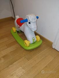 CAVALLO DONDOLO O SPINGI E VAI: Questo cavallino a dondolo offre un divertimento versatile: può essere utilizzato come tradizionale dondolo oppure, rimuovendo la base, trasformato in uno spingi e vai con rotelle, offrendo ai bambini due modalità di gioco in un unico prodotto. Utilizzabile sia all'interno che all'esterno. DESIGN SICURO ED ADATTABILE: Realizzato in resistente plastica, questo cavallino è progettato per bambini dai 2 ai 5 anni. La sua base stabile garantisce una sicura esperienza di dondolo, mentre la rimozione della base lo trasforma in uno spingi e vai, permettendo ai bambini di divertirsi anche in movimento. CAPACITA' DI CARICO: Con una resistenza fino a 25 kg, questo cavallino è adatto per bambini di varie taglie e permette loro di continuare a giocare mentre crescono, offrendo un divertimento duraturo e adattabile alle loro esigenze. SICUREZZA GARANTITA: Progettato con la sicurezza del bambino al primo posto, questo cavallino a dondolo è conforme ai rigorosi standard di sicurezza europei e porta il marchio CE, offrendo ai genitori la tranquillità che il loro bambino sta giocando in modo sicuro. DIMENSIONI OTTIMALI: Con una dimensione di 49x70x30 cm, questo cavallino è ideale per l'uso domestico, adattandosi facilmente a spazi interni e consentendo ai bambini di godersi il divertimento in qualsiasi momento e in qualsiasi luogo.