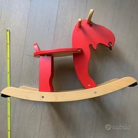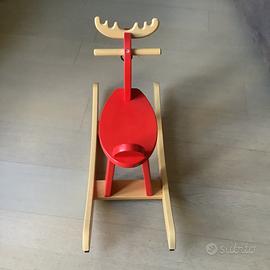 Ekorre Cavallo Alce a dondolo legno massello rosso/legno dell'albero della gomma Perfette condizioni cm 75x30x52 alt.