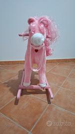 HOMCOM Cavallo a dondolo modello Unicorno con Suoni autentici Sella Grande Comfort Legno di pioppo Rosa dim. L74 x L33 x 62H cm