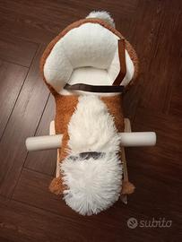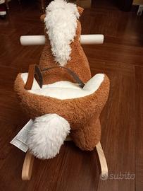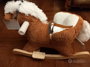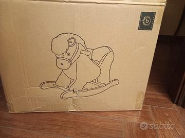 Cavallo a dondolo nuovo, ancora con etichetta e manici imballati, scatola di spedizione originale. Il cavallo a dondolo è adatto a partire dai 9 mesi sino ai 3 anni, ha schienale rialzato e cinture di sicurezza. Morbidissimo e struttura del dondolo in legno. Ideale per regalo di Natale. Vendo alla metà del prezzo originale