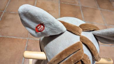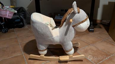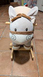 Cavallo a dondolo di peluche per bambini 18-36 mesi, a forma di asino con suoni realistici e struttura in legno di pioppo. Marca HOMCOM. Disponibile per consegna a mano.