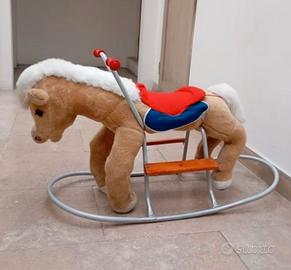 Cavallo a dondolo. Base resistente. Morbido pelo. Adatto come idea regalo per Natale