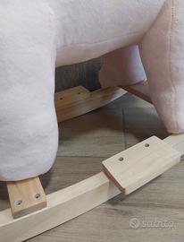 Dondolo in peluche a forma di cervo Base in legno di pioppo Premendo il pulsante sull'orecchio riproduce il verso dell'animale Dimensioni circa: 68L x 35.5P x 64Acm