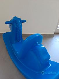 Cavallo a dondolo in plastica blu, marca Little Tikes. Misure: 118 x 17 x h 48 cm Prezzo d'acquisto €39,99
