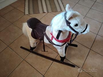 causa inutilizzo, vendo cavallo a dondolo, con suono del cavallo e movimento bocca. condizioni ottime. Tessuto in peluche. Fascia età 1-6 anni.
