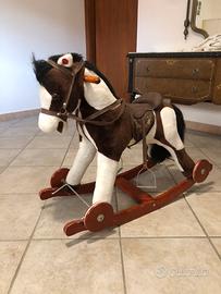 Cavallo a dondolo in ottime condizzioni con qualche segno di usura, ha sella e briglie che si possono togliere, rotelle a scomparsa e premendo le orecchie fa il suono del galoppo o il verso sel cavallo. Cedo a 20 euro, no perdi tempo grazie