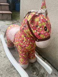 Cavallo a dondolo con colori sul rosa per bambina dai 1 ai 3/4 anni in quanto sella bassa (circa 30 cm)