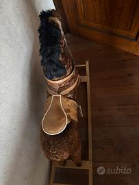 Cavallo a dondolo per bambini imbottito con sella e redini in pelle, buone condizioni usato pochissimo