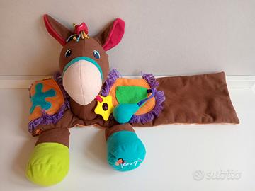 Divertente pelouche a forma di cavallo, si può legare alla vita del bambino come una cintura e nitrisce se colpito. Per bambini da 12 a 36 mesi.