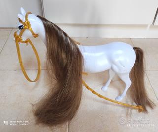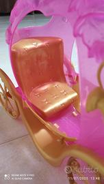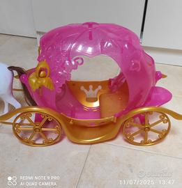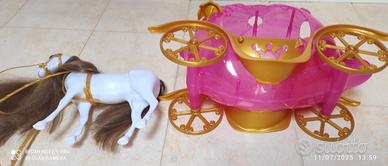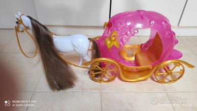 cavallo bianco con criniera e carrozza rosa -oro, le porte si aprono,tutto di plastica ,lunghezza totale 70 cm-altezza cavallo26cm-larghezza carrozza 20 cm....