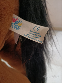 Cavallo in peluche con struttura interna in metallo che struttura l'oggetto e rende il cavallo stabile e robusto permettendo la seduta al bambino