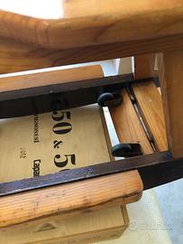 Cavallo a dondolo interamente in legno, con rotelle da poter posizionare per spostarlo stando seduti