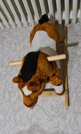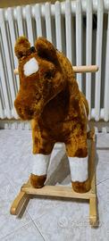 Dondolo a forma di cavallo, in legno, marrone e bianco morbido ed elettronico, nitrisce se si schiaccia l'orecchio. Ottime condizioni tenuto benissimo. Consegna a Milano Ovest.