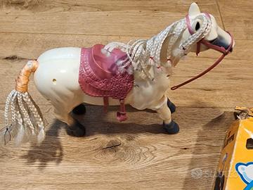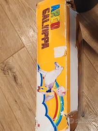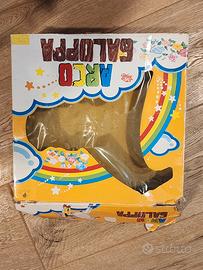 Direttamente dagli anni '70/'80, un classico del giocattolo italiano: Arco Galoppa. Il cavallo è completo della sua sella originale e viene venduto con la scatola dell'epoca. Condizioni Giocattolo: Ottime. Il corpo del cavallo è integro, la sella è presente e il meccanismo per il movimento è conservato. Condizioni Box: La scatola originale è presente e ha quel fascino vintage inconfondibile, seppur con i normali segni del tempo e di stoccaggio visibili in foto. Nota: Viene venduto esattamente come da foto (solo cavallo con sella e scatola). Un pezzo di modernariato ludico perfetto per chi vuole recuperare i giochi dell'infanzia o per collezionisti di giocattoli vintage Made in Italy