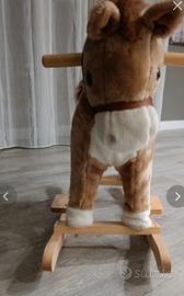 Cavalluccio a dondolo con due canzoni, doveva muovere la coda e anche la bocca, (ma non funziona il movimento), suonano le canzone e anche i suoni di cavallo. Non so se è un problema di batterie o un difetto perché prima funzionava.