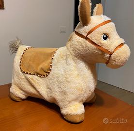 Cavalluccio cavalcabile per saltarci su, si gonfia e si sgonfia. Si può togliere il rivestimento per lavarlo. Conservato sgonfio.