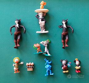 SOGGETTI IN PLASTICA DURA E GOMMA. CENERENTOLA CON CARROZZA, PESCI FRA I QUALI NEMO, TOM E JERRY, PAPERINO COI NIPOTINI, TOPOLINO E MINNIE, ECC. MISURE TRA 5 E 15 CM.