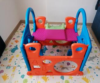 Centro Attività, Activity Center Feber Famosa, numeri e lettere. Con le sue dimensioni di 97 x 153 x 89 cm, il centro offre ampio spazio per giocare, rendendolo adatto sia per l'interno che per l'esterno. Ha diversi punti per salire le "scale" per poi scendere tramite uno scivolo. Presenti fori, buchi per poter entrare ed uscire e giocare come se fosse una casetta, una capanna, un tunnel.... Facile da montare e smontare. Resistente e sicuro. Ritiro a mano previo accordo. Non spedisco.